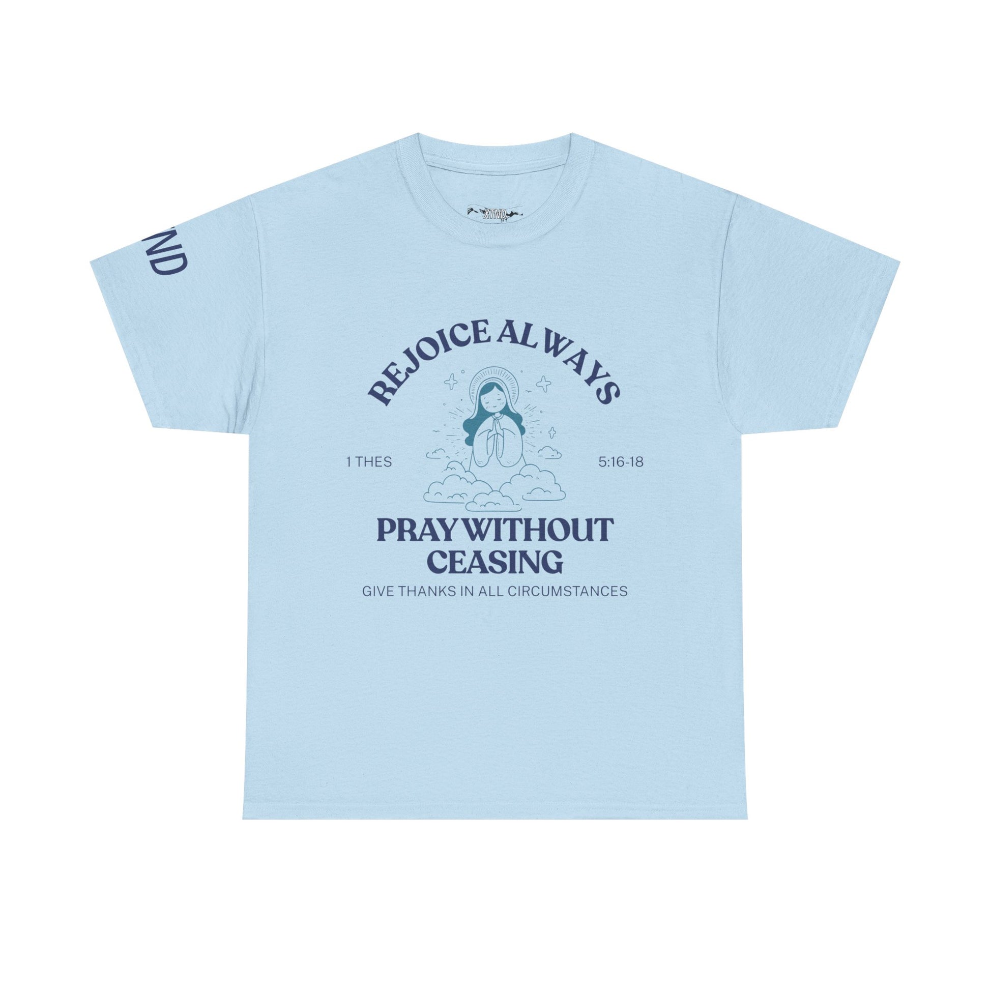 Celebrate faith in style with our Pray Without Ceasing Tee — a beautiful reminder to keep your heart, mind, and spirit connected to God throughout every moment of the day. This inspiring design features a peaceful image of a woman in prayer, surrounded by the timeless Scripture verse that encourages us to stay grounded in faith no matter what life brings.